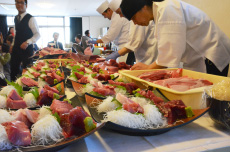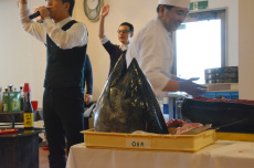 どーん!大迫力~。いよいよ解体ショーのスタートです。みなさん早く食べたいのを我慢して職人さんの包丁さばきに拍手を送ります